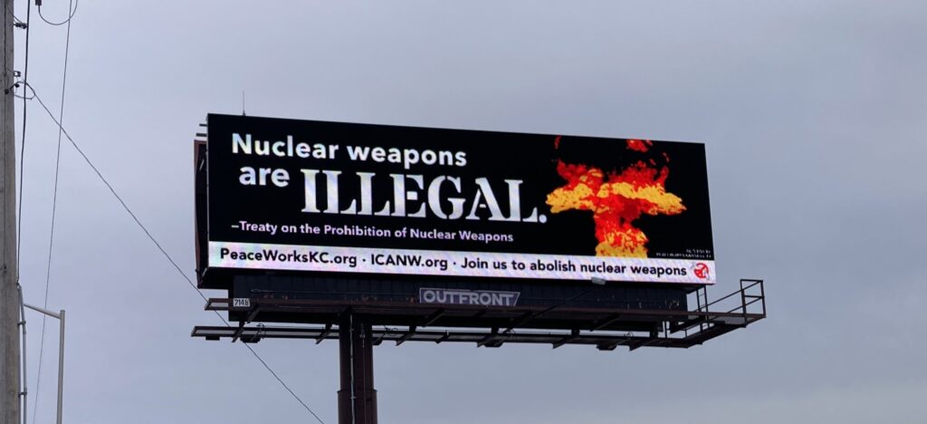 PeaceWorks Kansas City’s New Billboard: Nuclear Weapons are Illegal